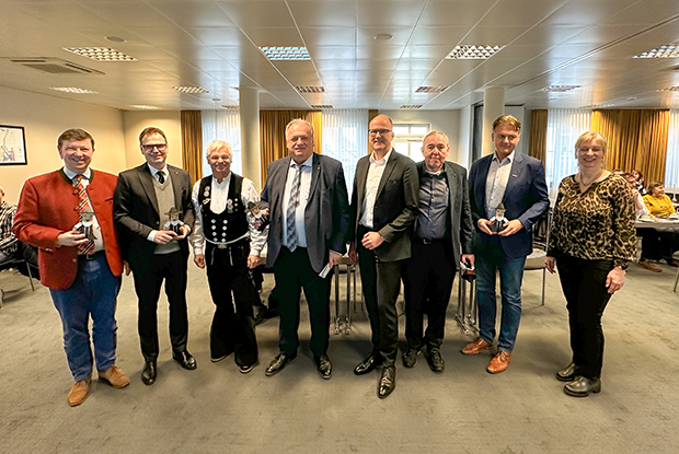 Walter Nussel forderte einen weiteren Abbau bürokratischer Vorgaben, die die Arbeit der Zimmerer behindern und das Bauen teurer und komplizierter machen. Dr. Christian von Dobschütz berichtete über die Bemühungen Genehmigungsverfahren zu beschleunigen. Jürgen Heckel lud die Zimmerer ein, die Stadt zur Landesgartenschau im kommenden Jahr zu besuchen. Christian Sendelbeck dankte für die starke Ausbildungsleistung der Betriebe, auch über das Fachliche hinaus: „Ihr gebt den Leuten nochmal den letzten Schliff.“