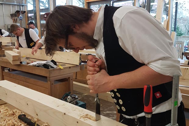 Nach dem Abitur wollte Charlotte Kleemann (19) Architektur studieren. Doch sie entschied sich für eine Zimmererlehre im Innungsbetrieb Max Kiener Zimmerei GmbH in Emmering (Landkr. Fürstenfeldbruck). Mittlerweile ist sie im 3. Lehrjahr und bereut ihre Entscheidung nicht – im Gegenteil.