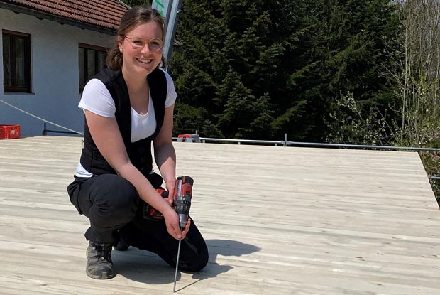 Die angehende Zimmerin Christina Hartl (17) kommt immer noch ins Schwärmen, wenn sie an die Baustelle während ihres Pflichtpraktikums denkt: „Auf dem Dach hat es mir sehr viel Spaß gemacht. Wir hatten eine super Aussicht auf die Berge und konnten über alles drüber schauen. Und von oben hat man die Wärme von der Sonne gespürt.“